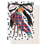 This whimsical, playful and trendy design is a nod to the smoky 1920s - a sultry harlequin in her chequered jumpsuit ready for her birthday celebrations.