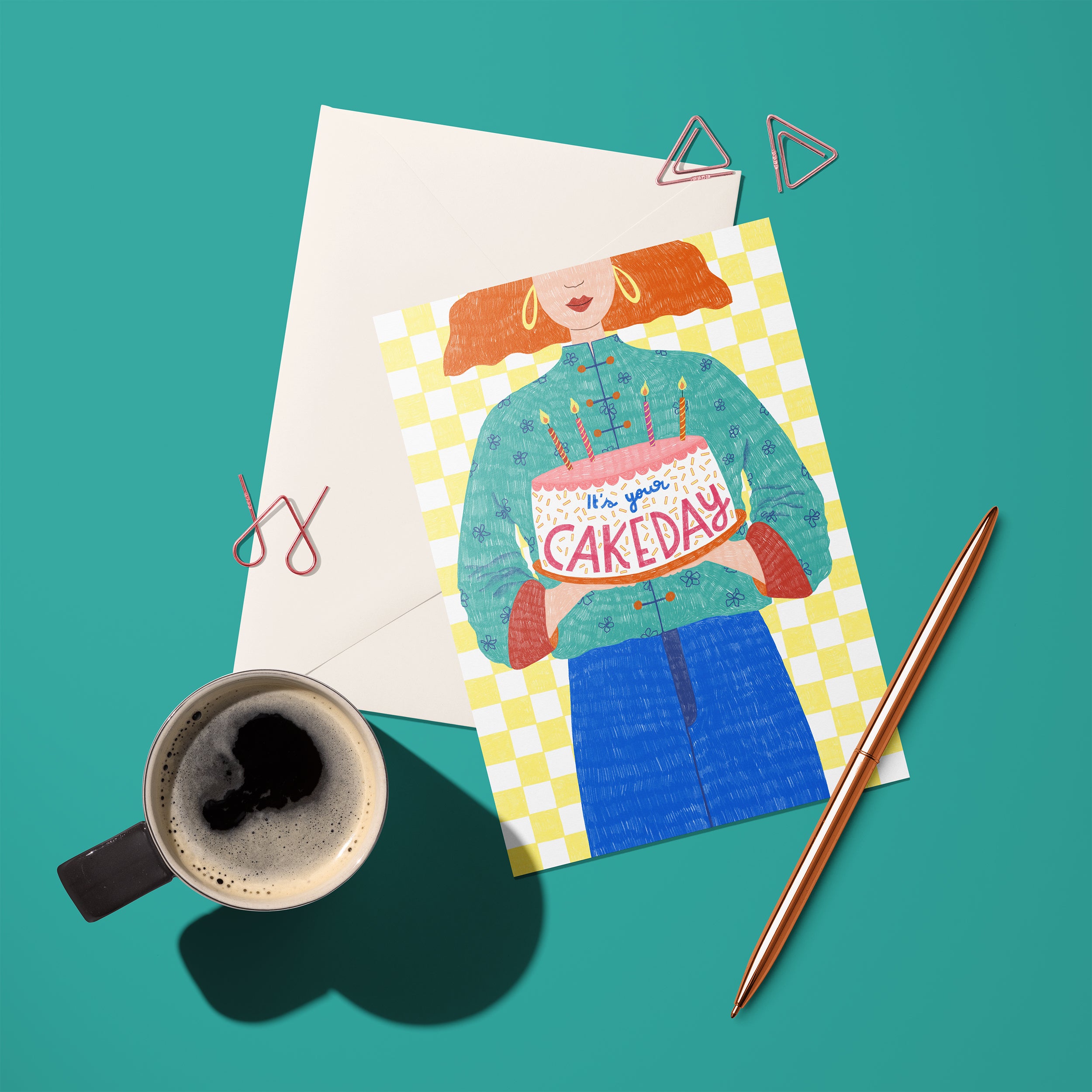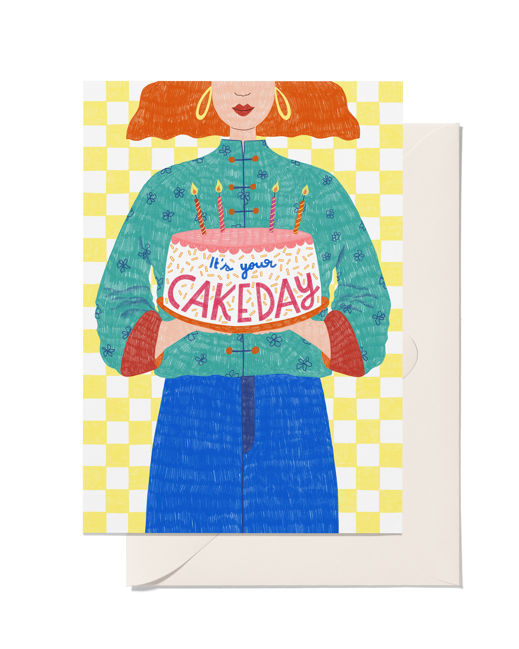 Time to celebrate a loved one's cake day, aka birthday, with this fun and funky greeting card. (And who doesn't love a bit of yellow check?)