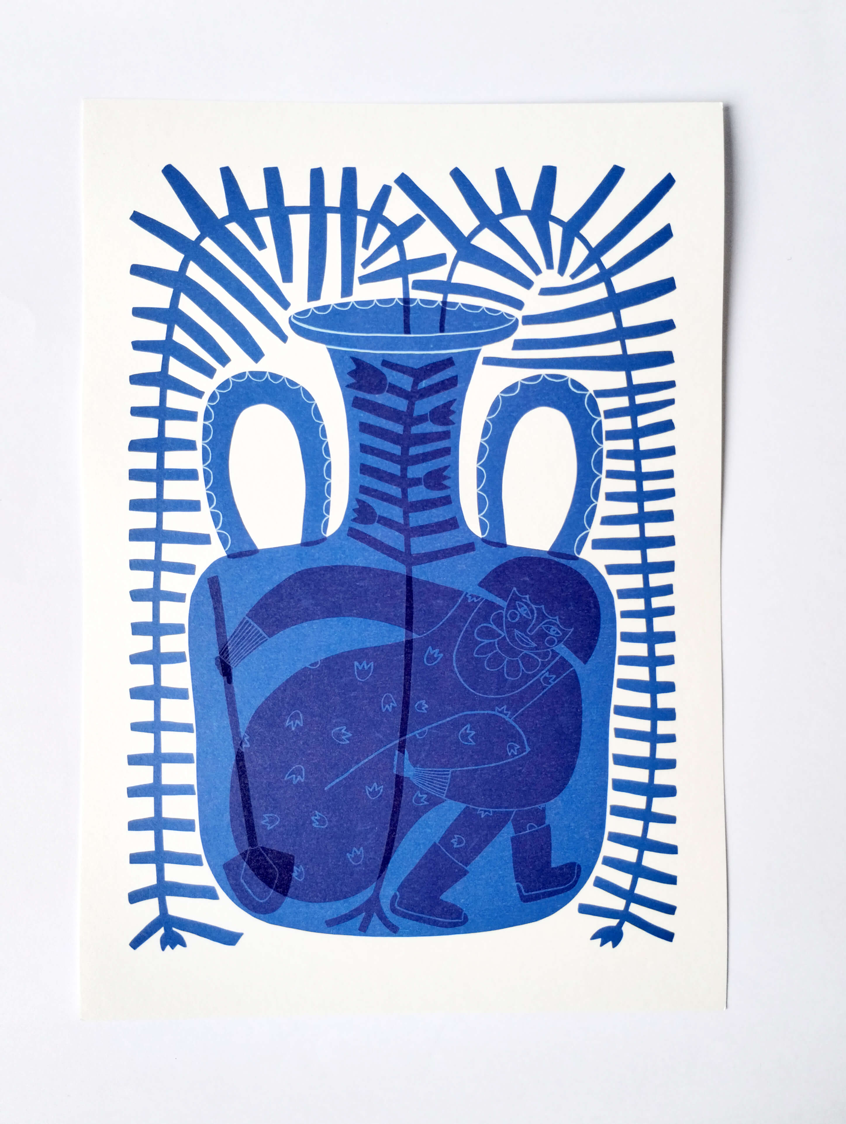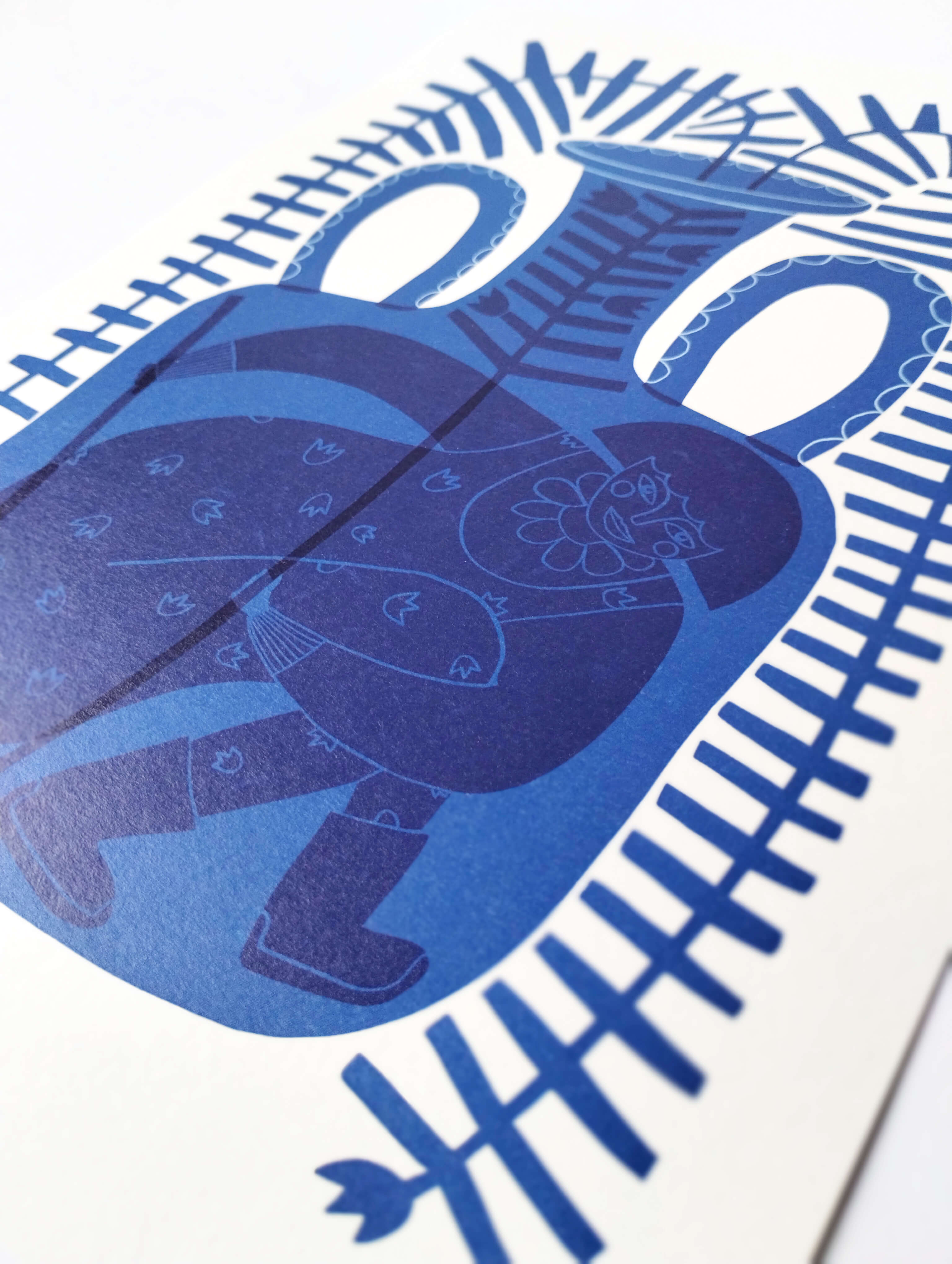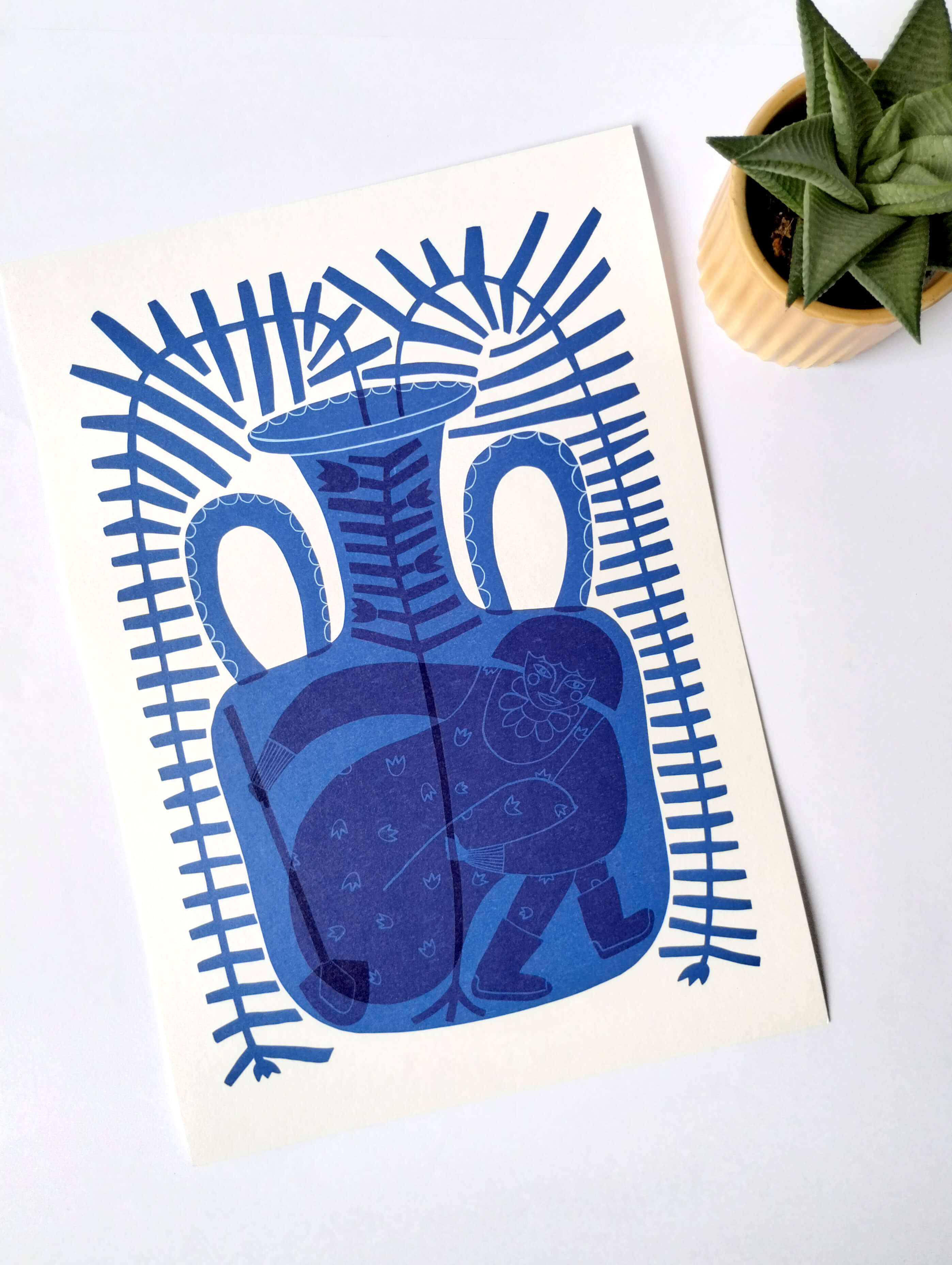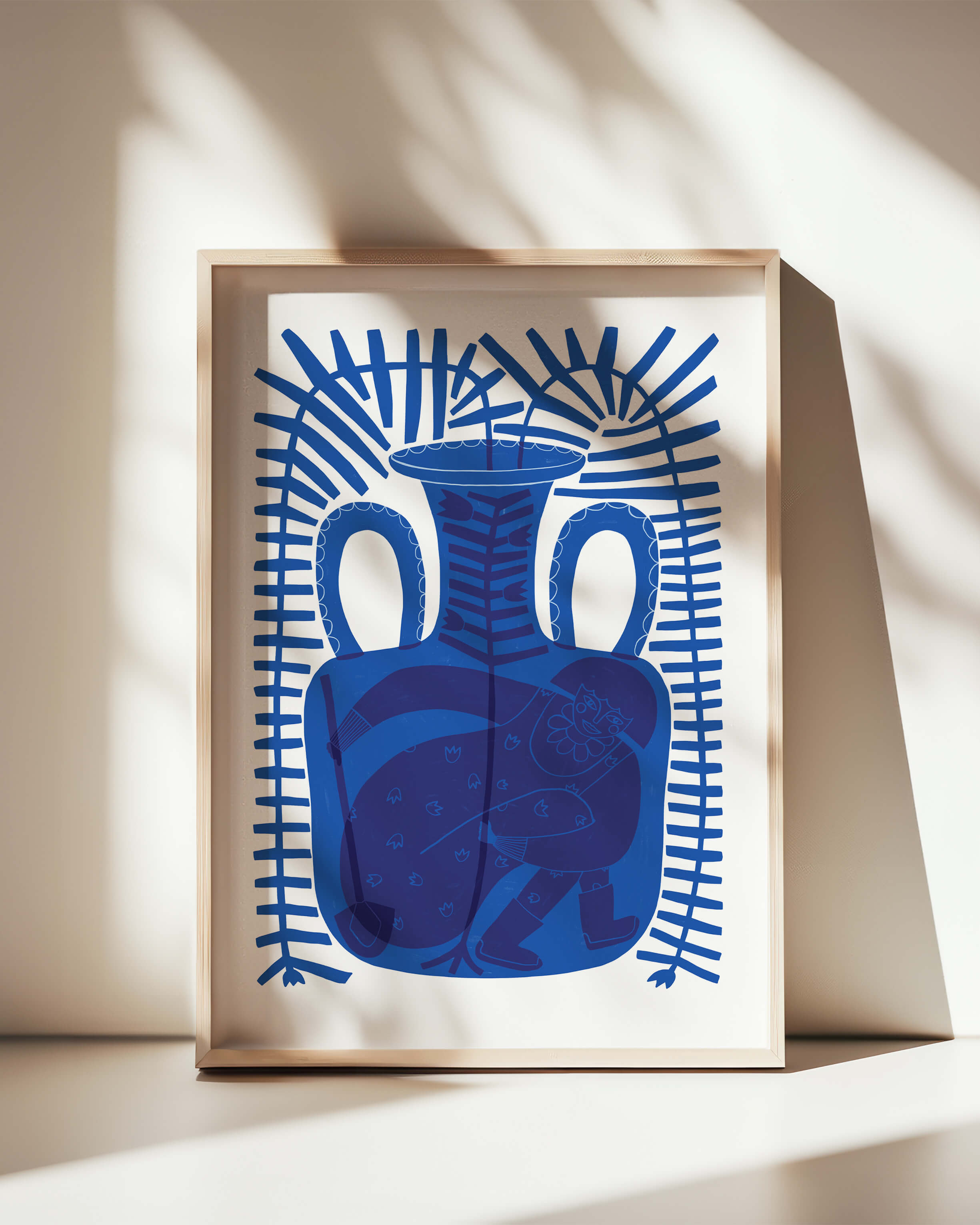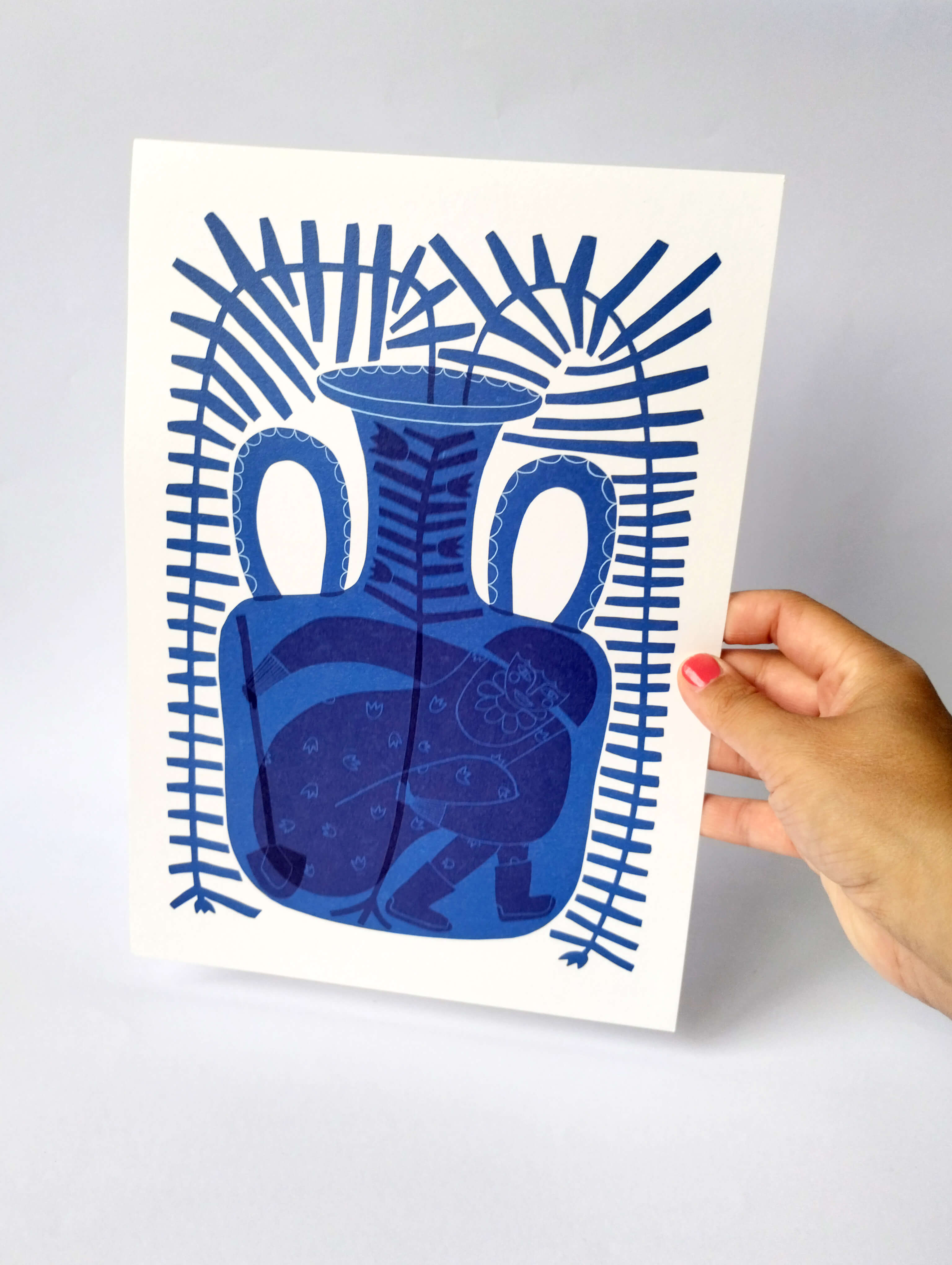 Depicting a stylised cobalt blue vase, it is sustainably printed in the UK and makes a striking addition to any eclectic interior. Perfect for gifting or brightening up your own home.