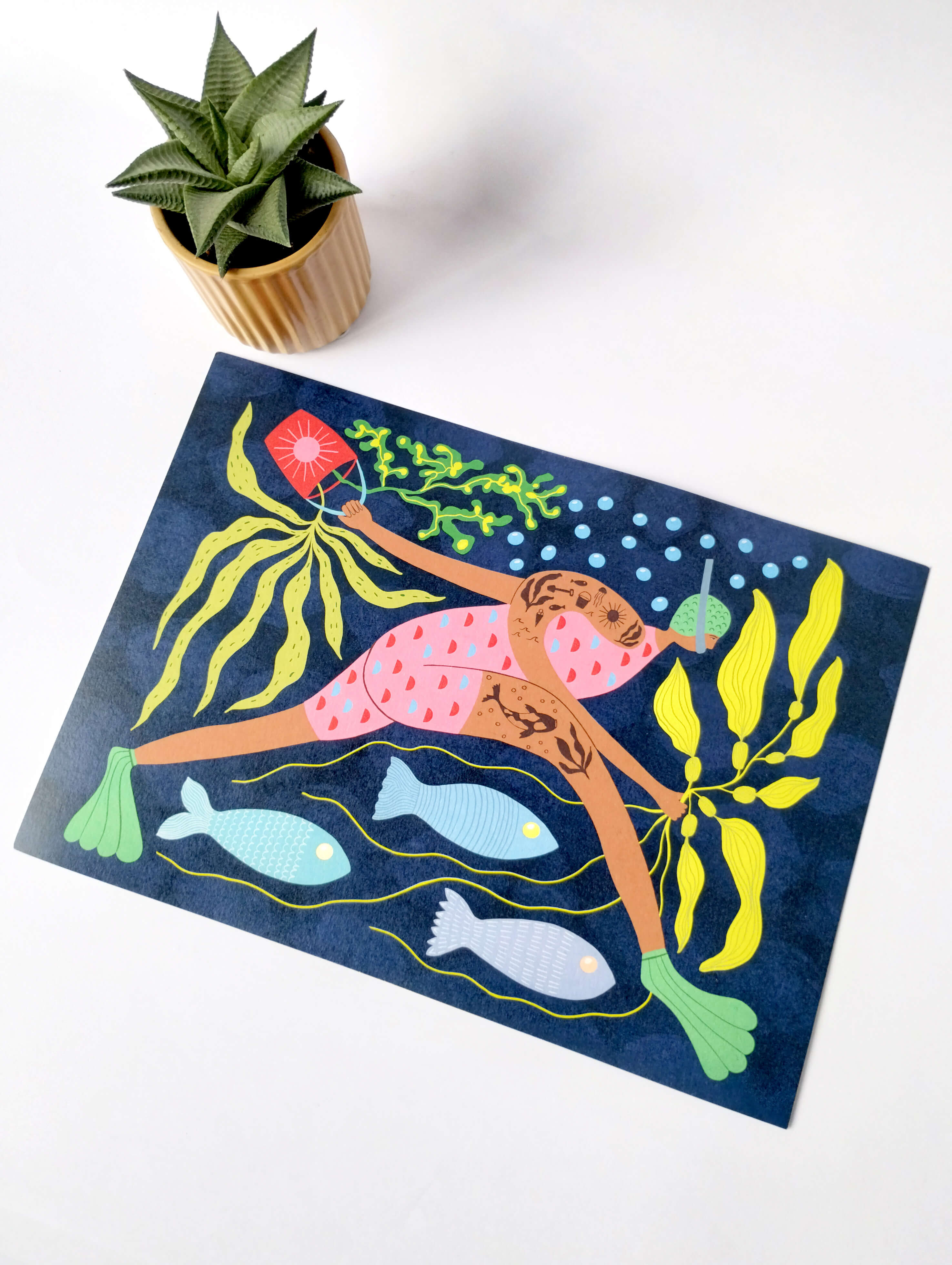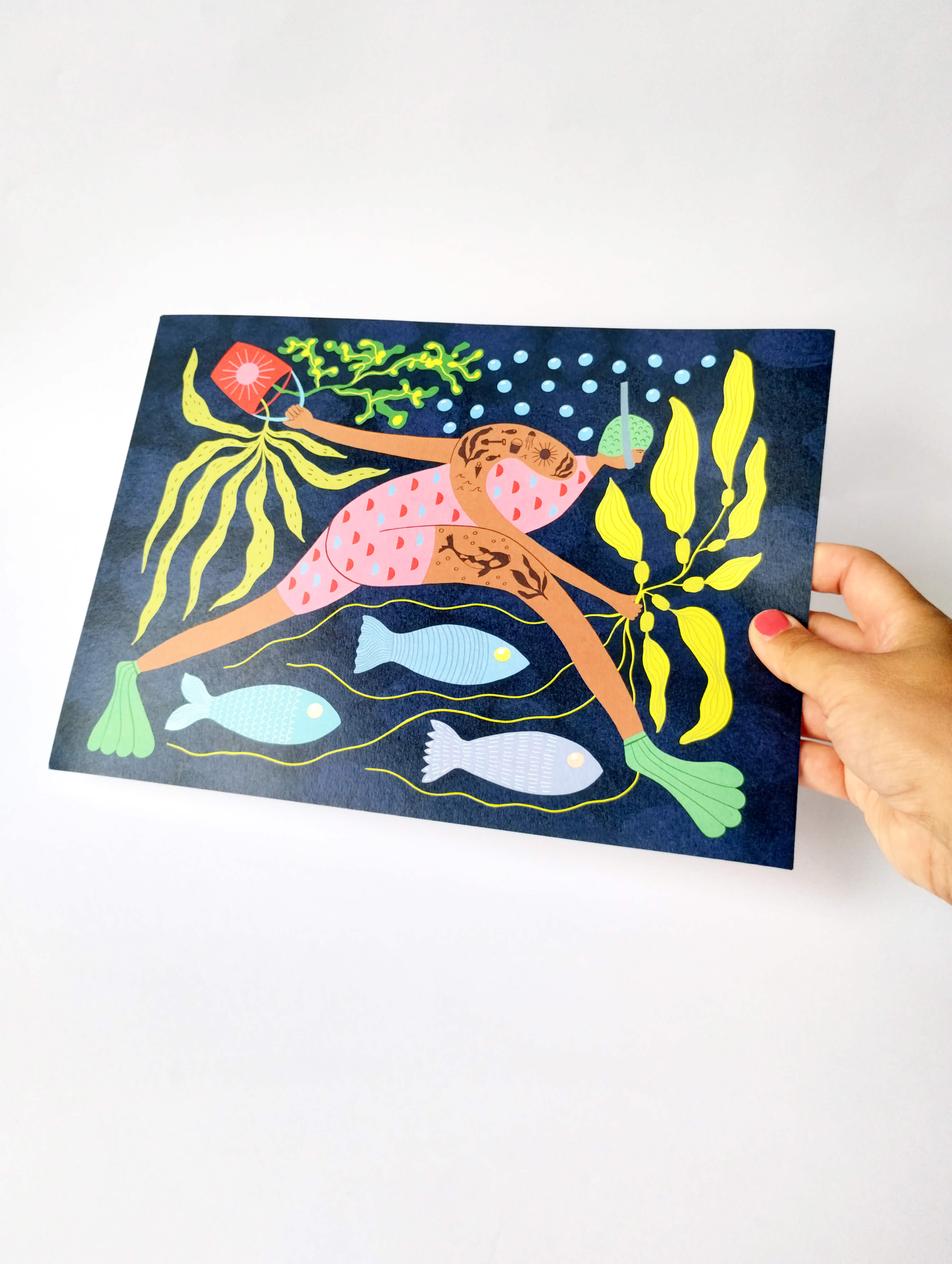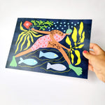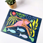This print would make a gorgeous addition to a sea and swim lovers home or simply add a touch of magic and adventure to any eclectic interior.